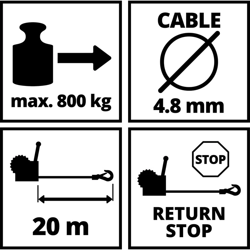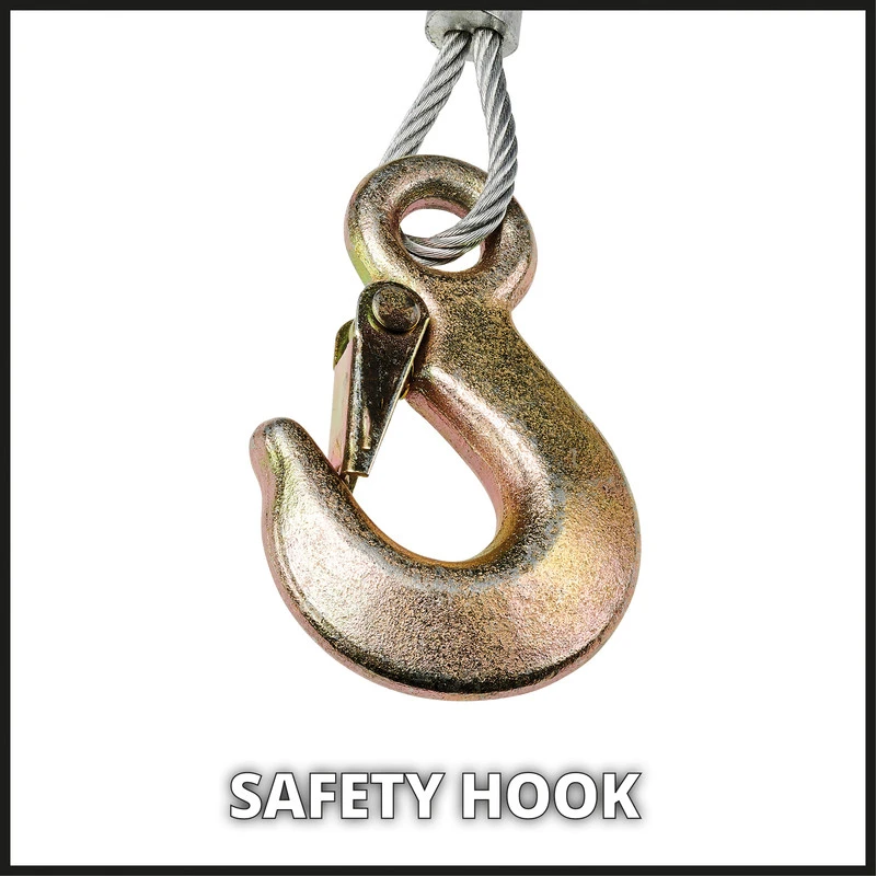 • Inclusief automatische rem, veiligheidshaak met veiligheidsklep , eindstop en montageplaat met gaten.