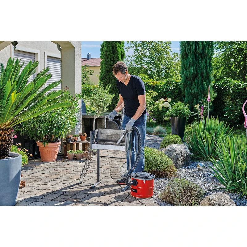 De Einhell aszuiger TC-AV 1718 D is een echte allrounder in huis en bij het klussen. Of nu afgekoelde as uit de haard of de kachel moeten worden verwijderd, dan wel of de barbecue moet worden gereinigd: de aszuiger gaat niks uit de weg. Dat de machine uithoudingsvermogen heeft voor langer gebruik bewijst het 18 liter grote reservoir. Het maximale zuigvermogen bedraagt 170 mbar. Bovendien maakt de praktische draaggreep een eenvoudig transport mogelijk. Met de 1 meter lange zuigslang (diameter 36 mm) kan iedere hoek gemakkelijk worden bereikt en gereinigd.