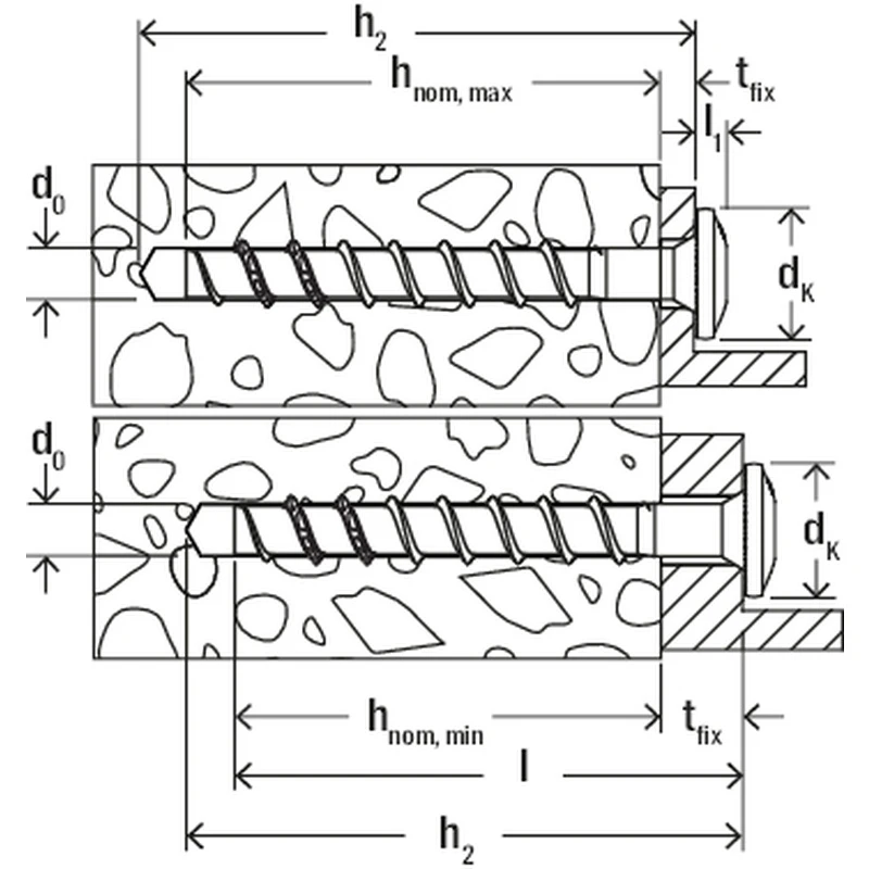 • De speciale tandgeometrie maakt het snel indraaien in beton mogelijk