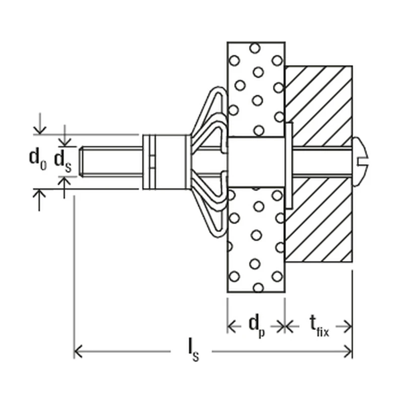 • Voor bevestigingen aan gipsplaten, hardboard en plaatmateriaal (6-15 mm) met een holle ruimte als achtergrond