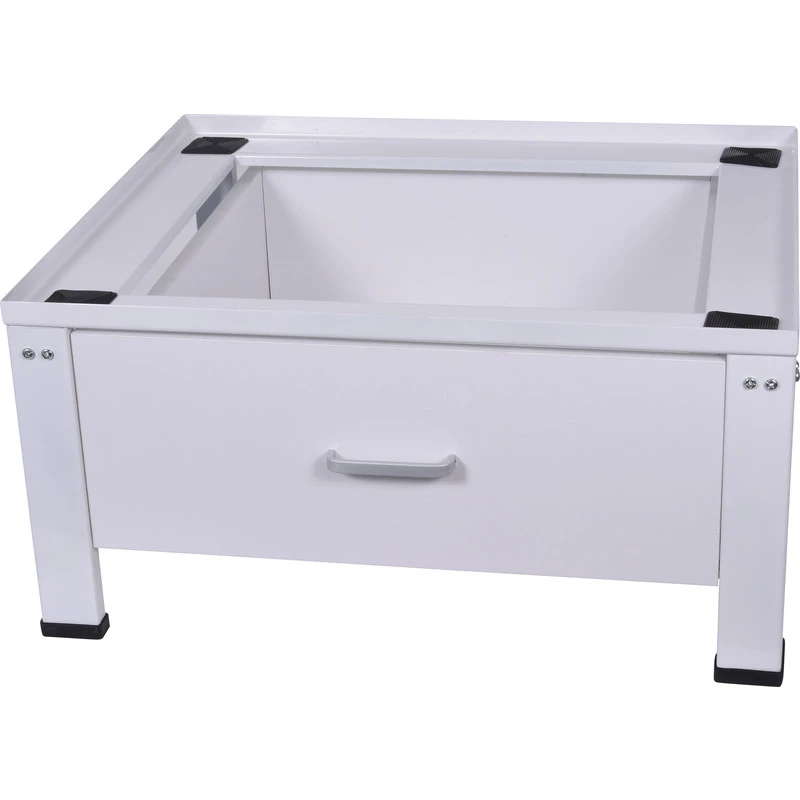 Metalen frame met rubber voeten. Afgebeeld m/lade. Afmetingen BxD: 615x550mm.