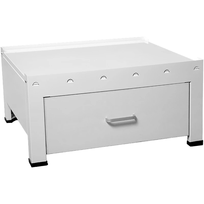 Metalen frame met rubber voeten. Afgebeeld met houten lade. Afmetingen BxD: 610x550mm.